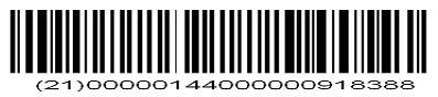 1.1 監(jiān)管碼碼制 監(jiān)管碼采用UCC/EAN-128條碼符號表示UCC/EAN-128(Multi) AI取值 21 Serial Number的一維條形碼,符合國際物品編碼協(xié)會(GS1)條碼碼制標(biāo)準(zhǔn)要求。具體碼制規(guī)范見GB/T 15425—2002《EAN?UCC系統(tǒng) 128條碼》、GB/T 16986—2003《EAN·UCC系統(tǒng)應(yīng)用標(biāo)識符》。 1.2 監(jiān)管碼表現(xiàn)形式 以00000144000000918388商品監(jiān)管碼為例,由條碼生成器自動生成的監(jiān)管碼如下: